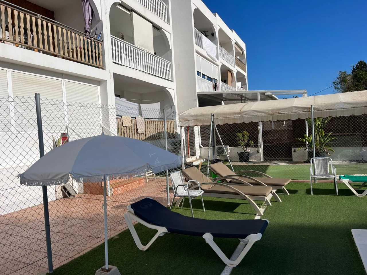 El residencial es tranquilo, residentes de todo el año y tiene fácil aparcamiento en la zona. Tiene una pisicina para niños y otra piscina más grande.