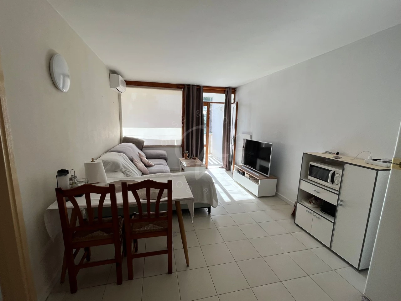 Dispone de un salón amplio, luminoso, con cocina tipo office y acceso directo a la terraza que esta a su vez da a la piscina.
